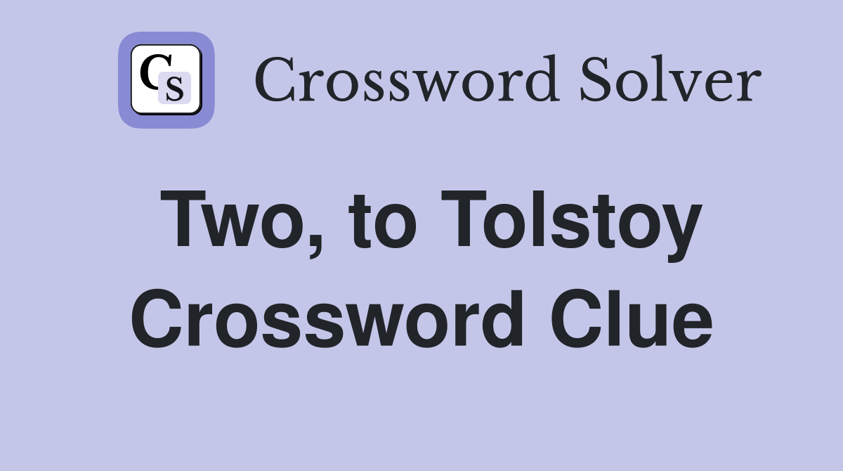 Two, to Tolstoy Crossword Clue Answers Crossword Solver