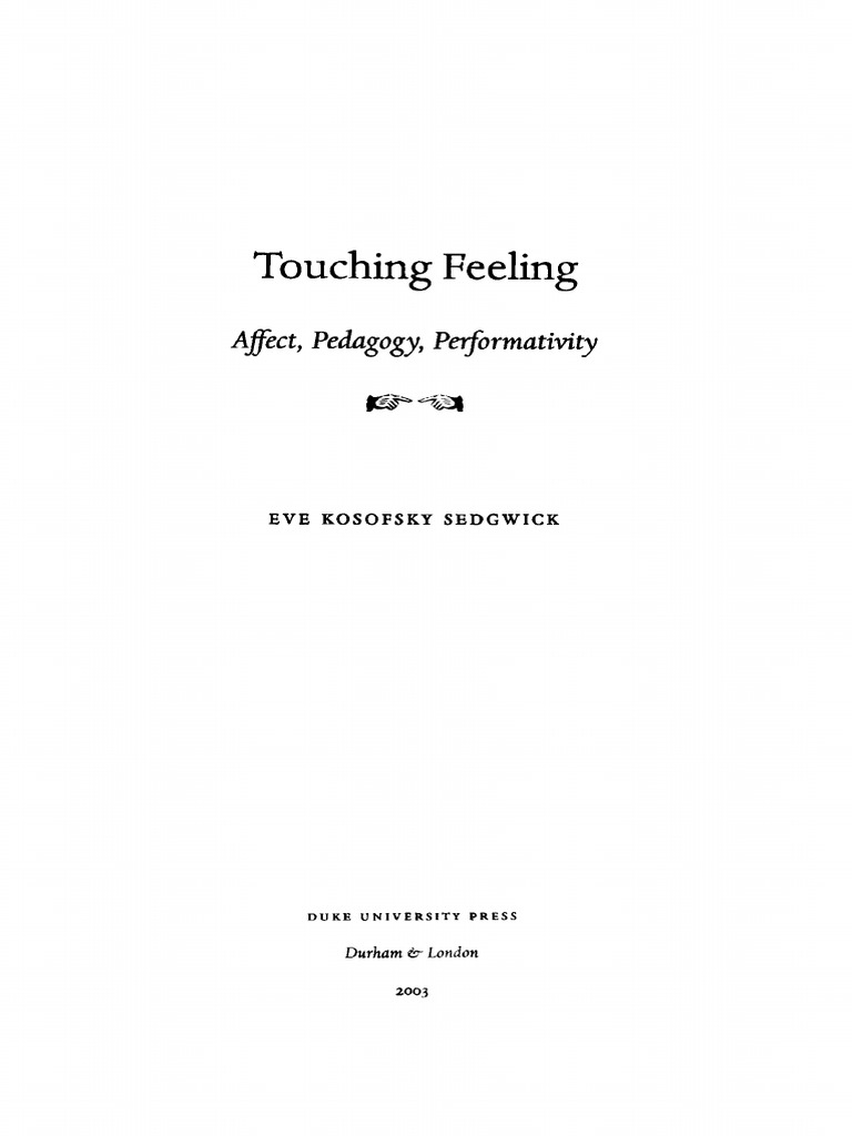 Touching Feeling Affect Pedagogy Performativity - Although i have felt free to revise, the essays appear in. A pioneer in queer theory and literary studies, eve kosofsky sedgwick brings together for the first time in touching feeling. A pioneer in queer theory and literary studies, eve kosofsky sedgwick brings together for the first time in touching feeling her most powerful. A pioneer in queer theory and literary studies, eve kosofsky sedgwick brings together for the first time in touching feeling. Touching feeling is a palimpsest of previously published and unpublished material.