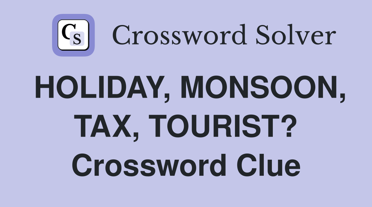 HOLIDAY, MONSOON, TAX, TOURIST? Crossword Clue Answers Crossword Solver