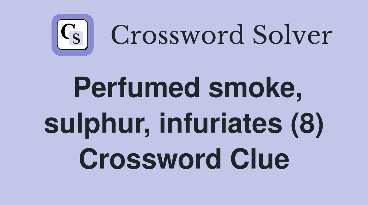 Perfumed smoke, sulphur, infuriates (8) Crossword Clue Answers