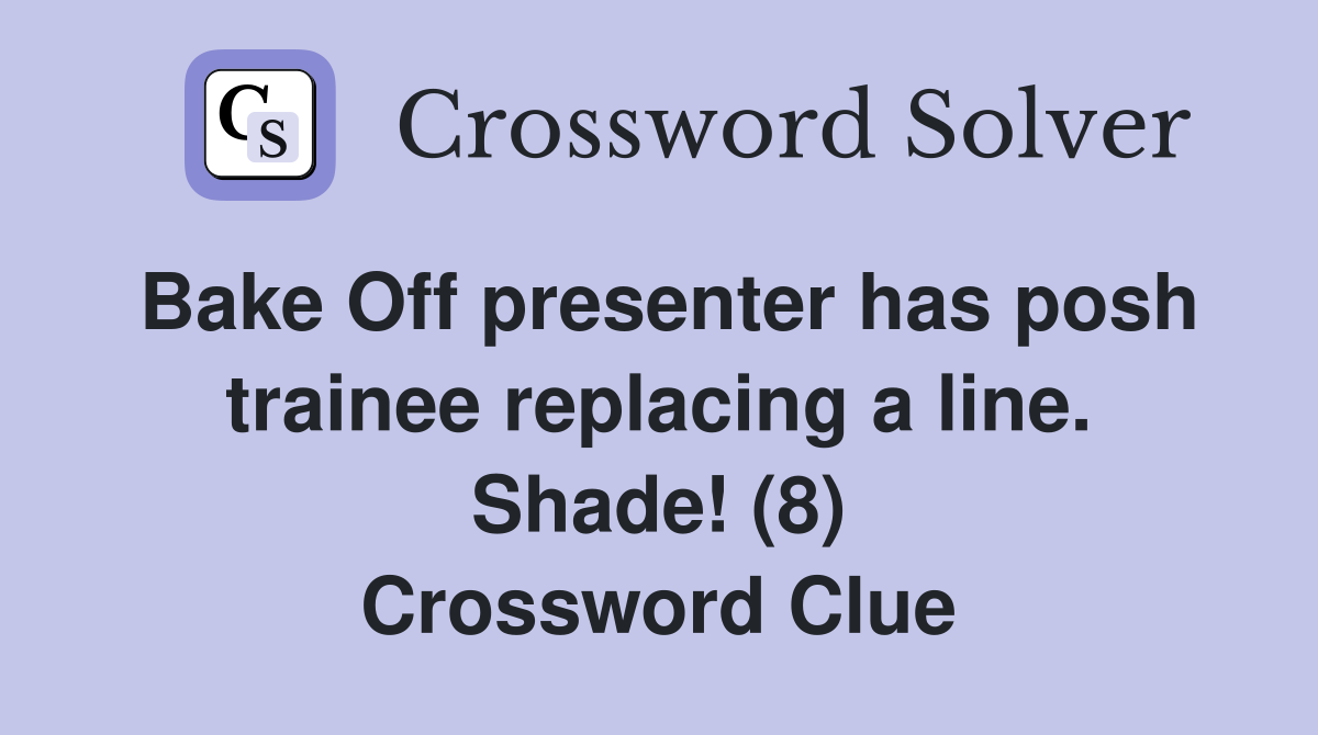 Bake Off presenter has posh trainee replacing a line. Shade! (8