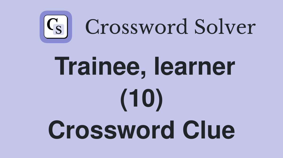 Find 12 possible solutions for the crossword clue trainee with 4 to 10 letters. On this page you will find the trainee crossword puzzle clue answers and. Here are the possible solutions for trainee clue. Here is the answer for the crossword clue trainee last seen in la times daily puzzle. It was last seen in the daily telegraph quick.