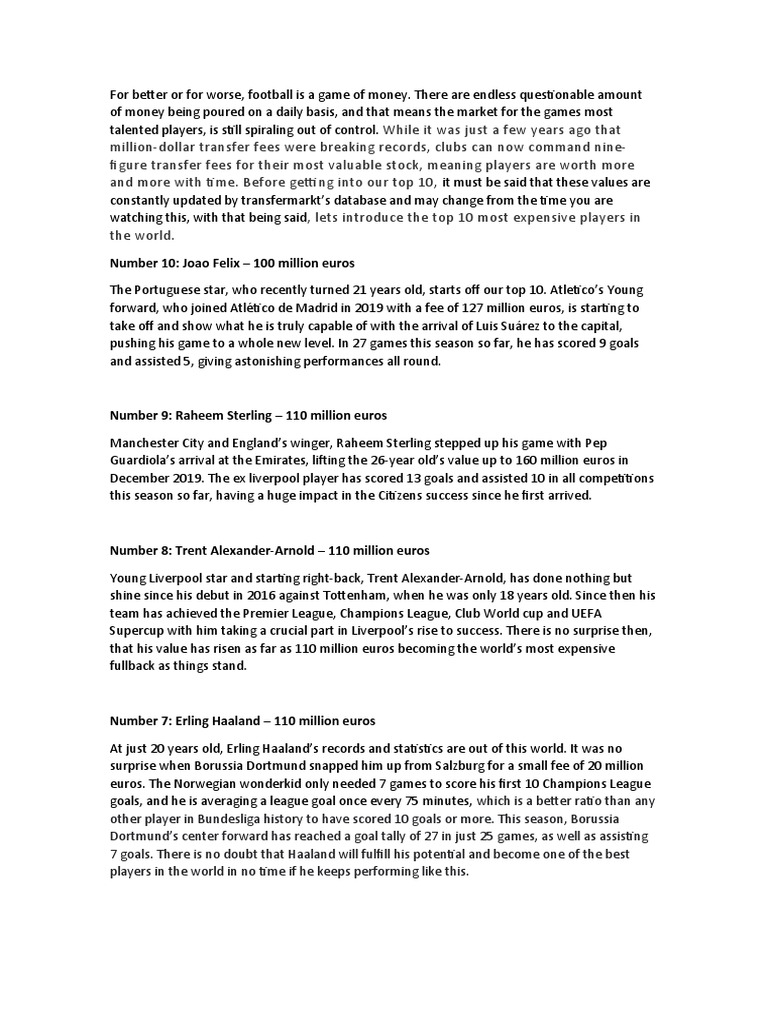 Top 10 Most Valuable Players in The World PDF