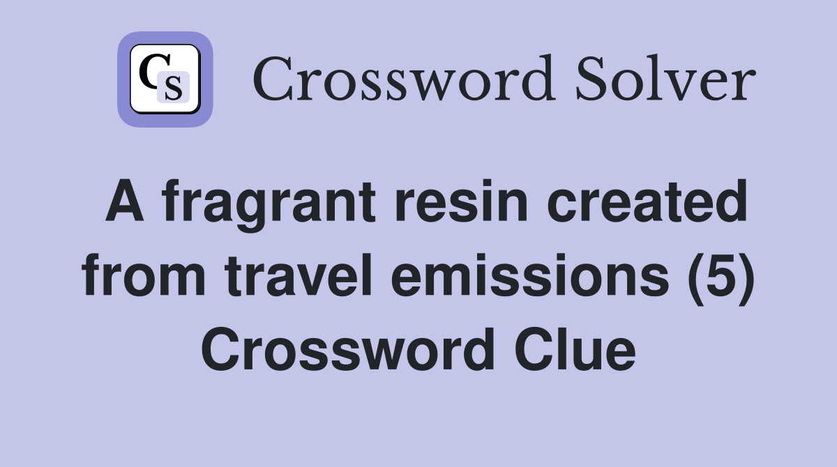 A fragrant resin created from travel emissions (5) Crossword Clue
