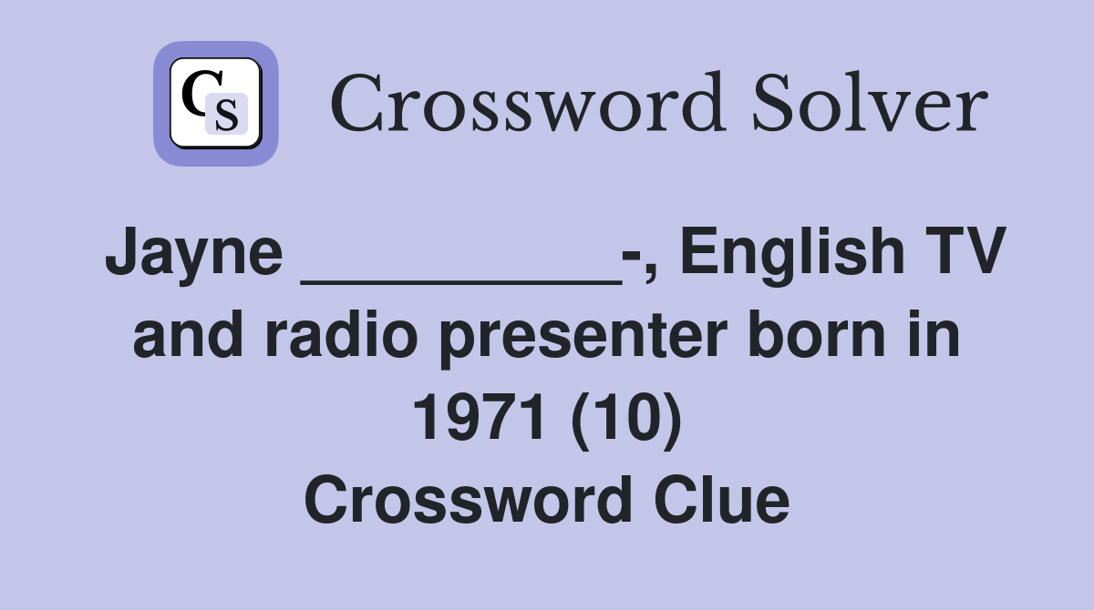 Jayne _________, English TV and radio presenter born in 1971 (10