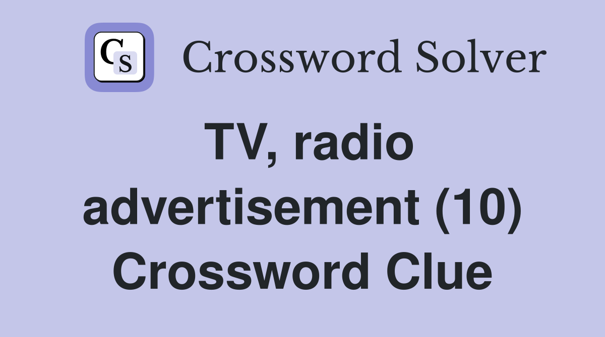 TV, radio advertisement (10) Crossword Clue Answers Crossword Solver