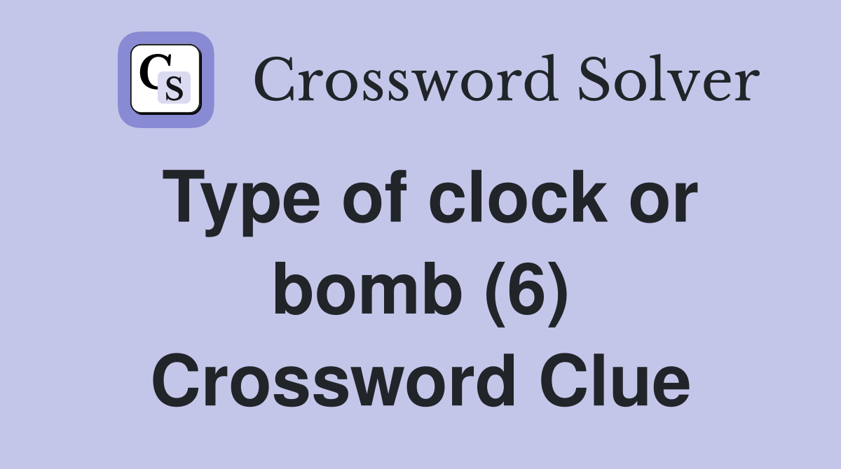 Type of clock or bomb (6) Crossword Clue Answers Crossword Solver