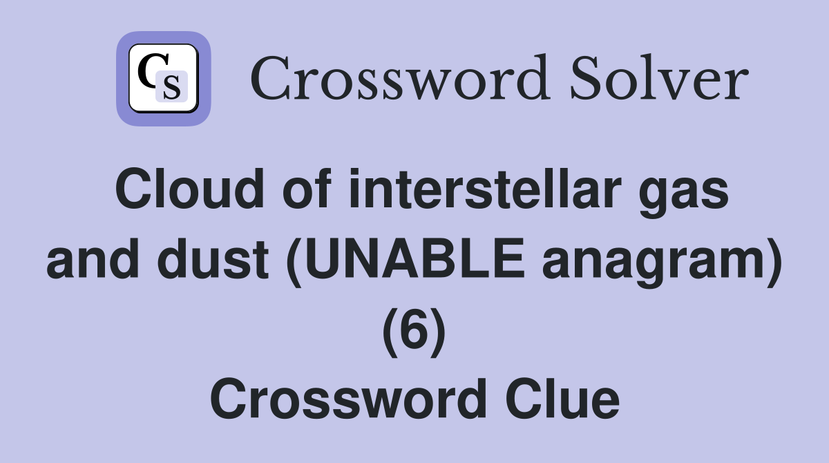 Cloud of interstellar gas and dust (UNABLE anagram) (6) Crossword