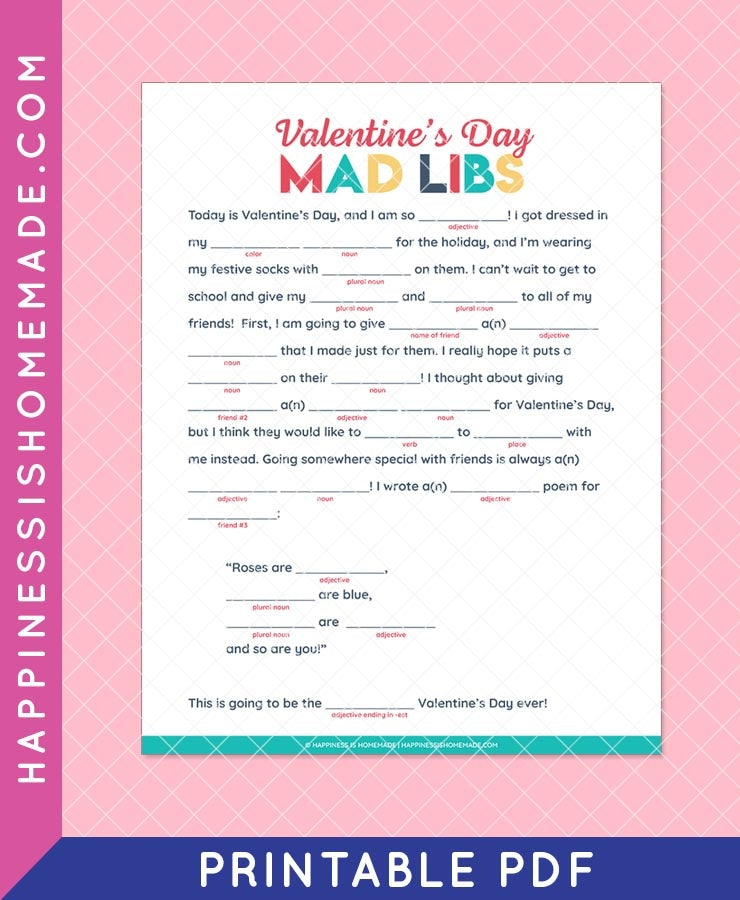 Get the free printable valentine’s day mad libs for a fun activity for school parties or just to celebrate the season of love! Bring on the fun and hilarity with this free printable valentine’s day mad libs! It’s a terrific game to play in the classroom, for. Valentine's day mad libs games have some laugh out loud word fun this.
