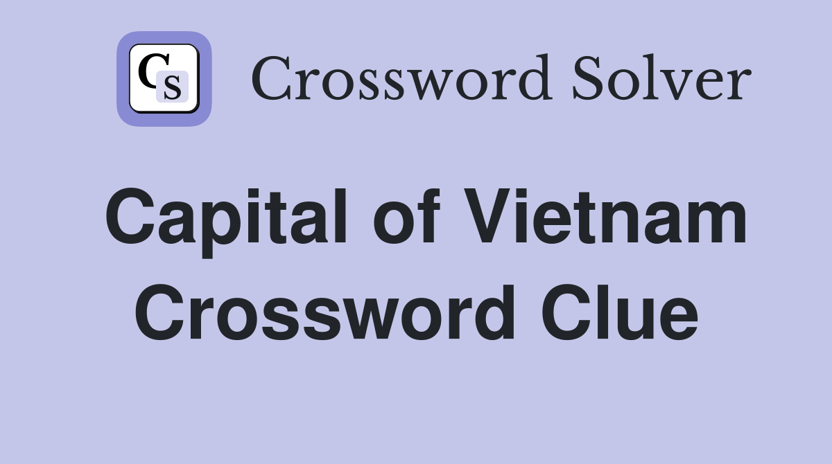 The crossword solver found 30 answers to capital of vietnam, 5 letters crossword clue. Here is the answer for the crossword clue vietnam's capital last seen in universal puzzle. Vietnam's capital daily themed crossword answer is. We hope you found the. Vietnam's capital is a crossword puzzle clue that we have spotted over 20 times.