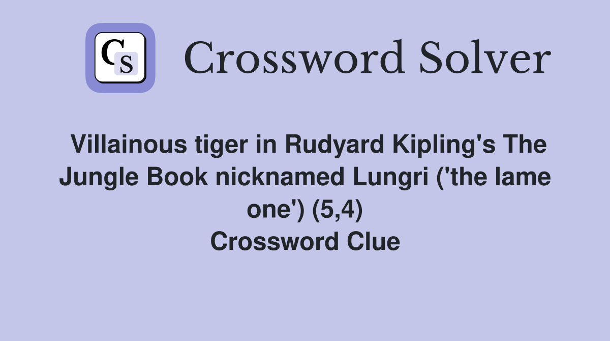 Villainous tiger in Rudyard Kipling's The Jungle Book nicknamed Lungri