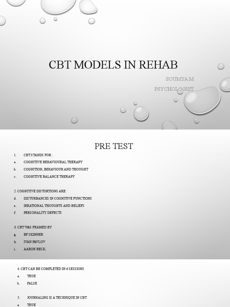 CBT Models in Rehab PDF Cognitive Behavioral Therapy Psychotherapy
