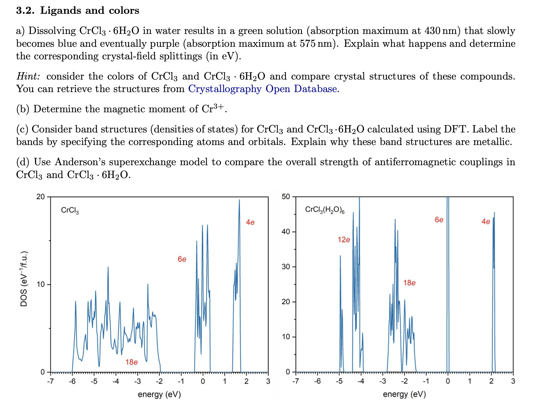 Solved 3.2. Ligands and colors a) Dissolving CrCl3⋅6H2O in