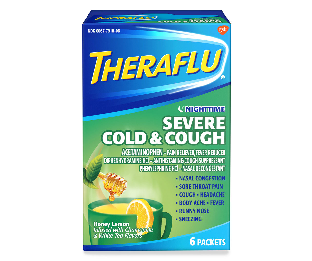 Theraflu Severe Cold, MultiSymptom, Lipton Green Tea Honey, 44 OFF