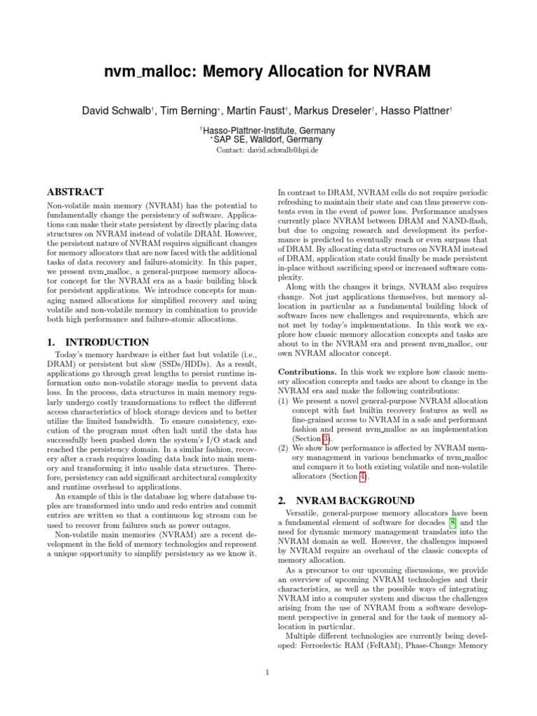 NVM Malloc Memory Allocation Dor NVRAM by Schwalb, Berning, Faust