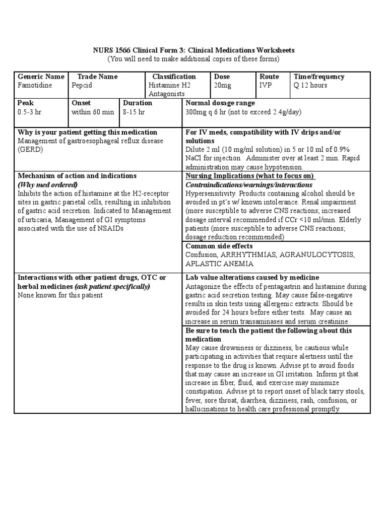 Pepcid IV Famotidine Dose (Biochemistry) Drugs