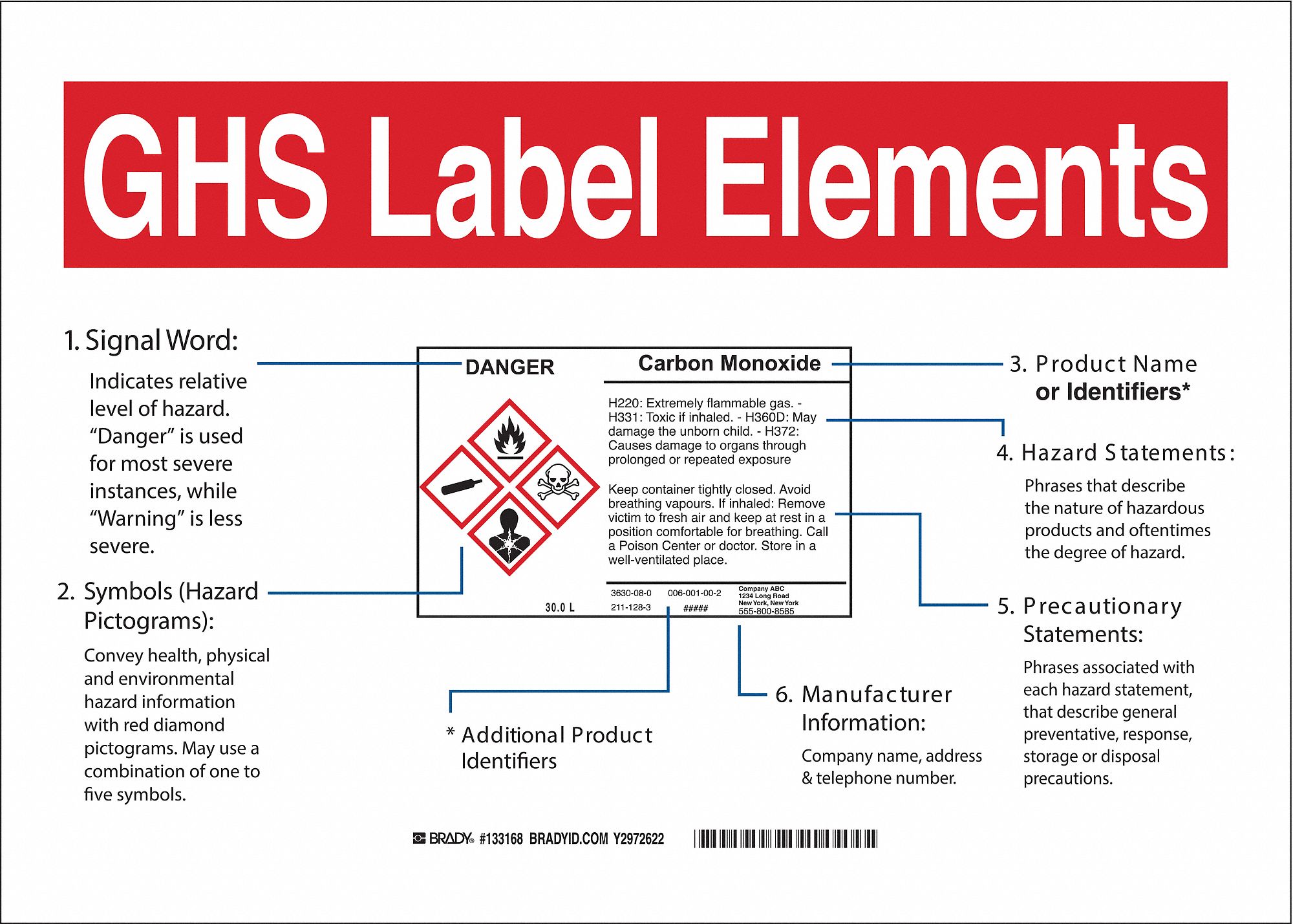 BRADY GHS Sign GHS Label Elements, Polyester, 10 in Ht, 14 in Wd