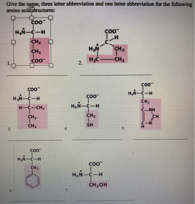 Solved For each amino acid, the name, threeletter