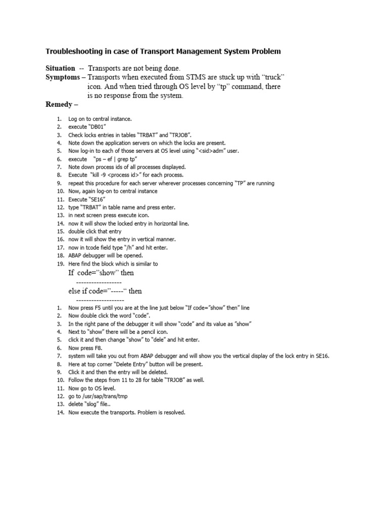 Troubleshooting in Case of Transport Management System Problem PDF