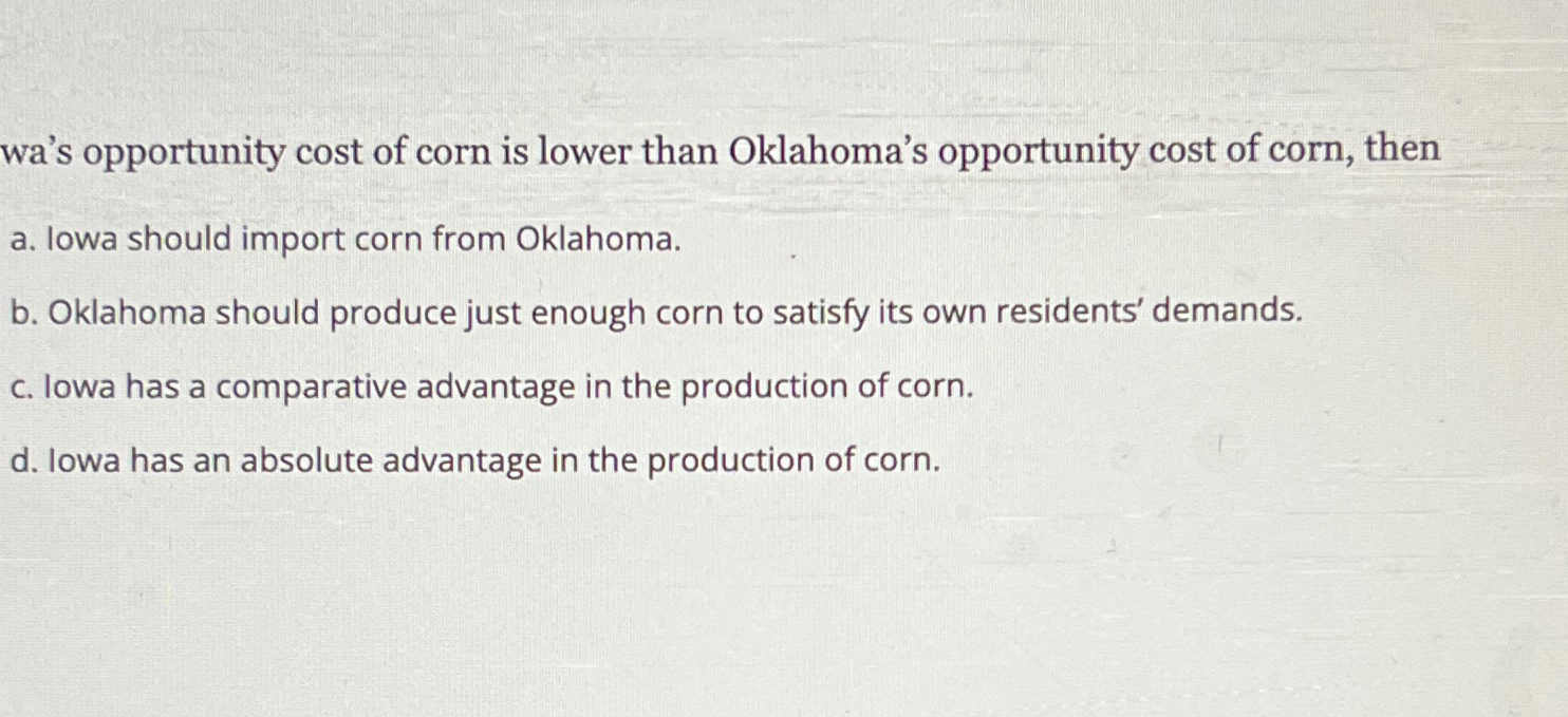 Solved wa's opportunity cost of corn is lower than