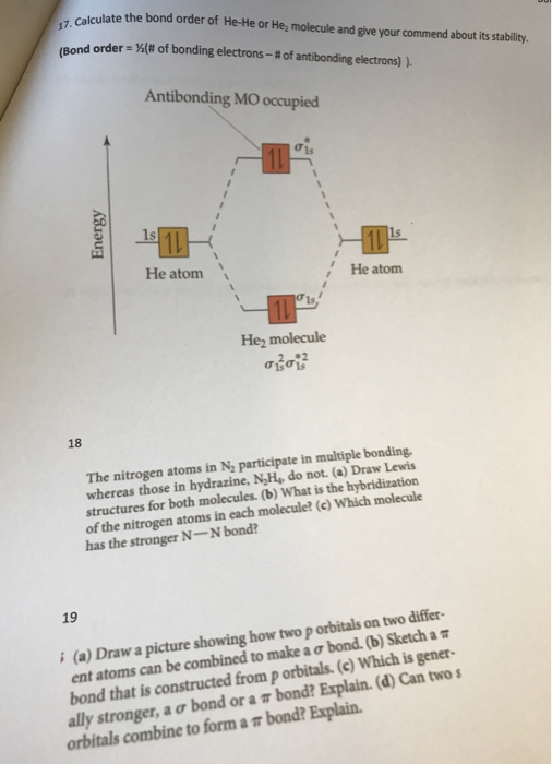 What Is The Bond Order Of He2 - To find the bond order of h e 2 +, first determine the number of bonding electrons and antibonding electrons by. Bond order is 0.5, and. Draw an mo diagram to predict the bond order and stability of an he2+ molecule formed from one he atom and one he+ ion. The bond order of the he2+ ion is 1, indicating a single bond between the two helium ions. The helium dimer is a van der waals molecule with formula he 2 consisting of two helium atoms. The he2+ ion is formed by removing two. This means that the bond between the two. We can determine the bond order of a molecule by subtracting the antibonding (destablizing electrons) from the bonding (stabilizing. [2] this chemical is the largest diatomic. Here’s the best way to solve it.