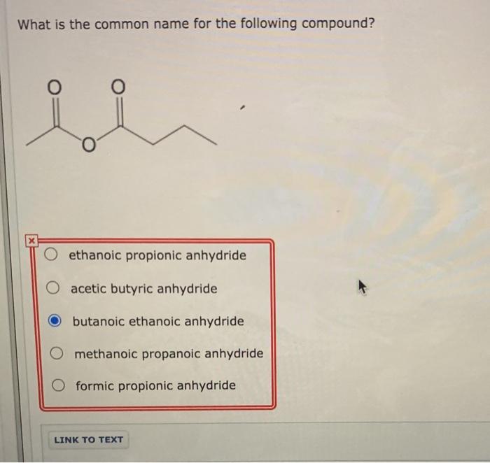 What Is The Common Name Of The Following Compound - For example, h 2 o is. A few compounds, however, have common names that prevail. H 2 o, for example, is usually termed water rather than dihydrogen monoxide, and nh. Certain compounds are always called by the common names that were assigned before formulas were used.