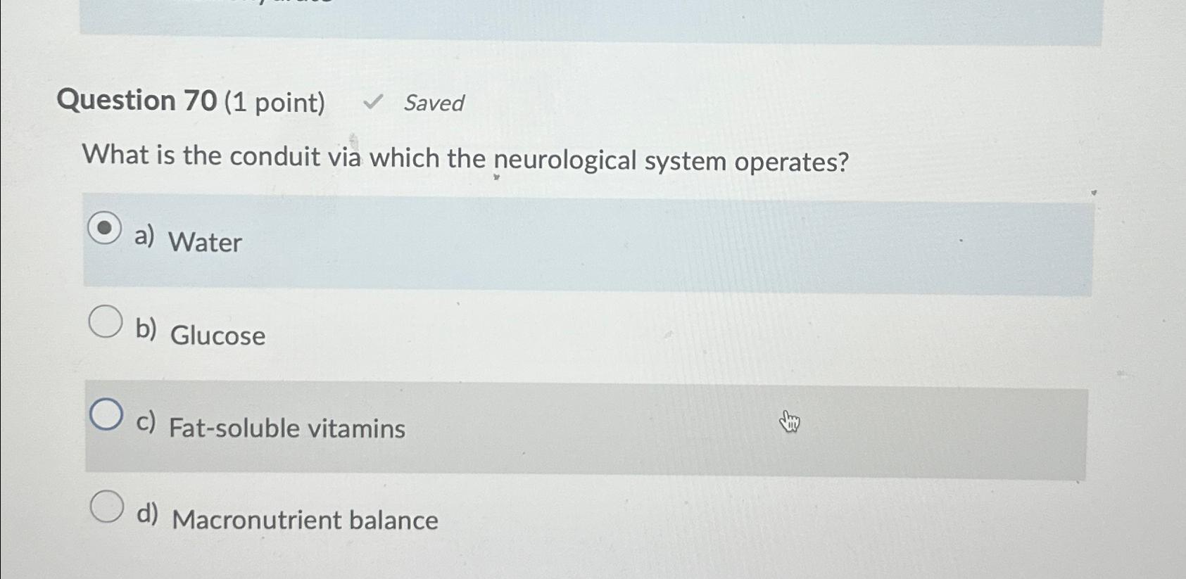 Question 70 (1 point) What is the conduit via which the neurological