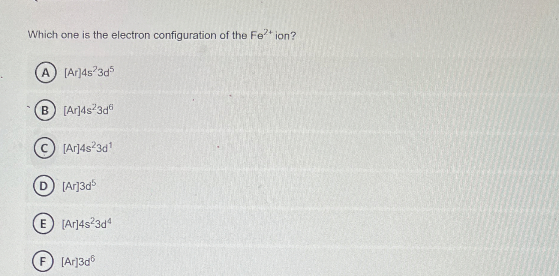 Solved Which one is the electron configuration of the Fe2+