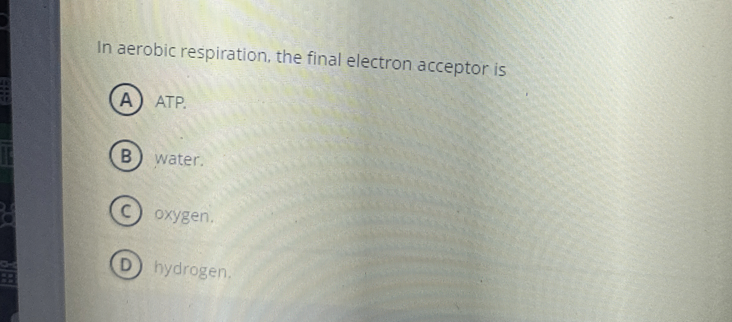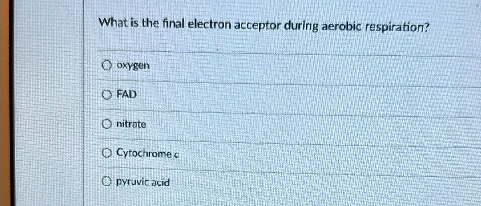 Solved What is the final electron acceptor during aerobic