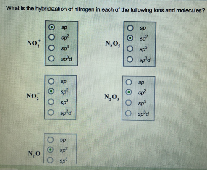 SOLVED What is the hybridization of nitrogen in the nitrite ion