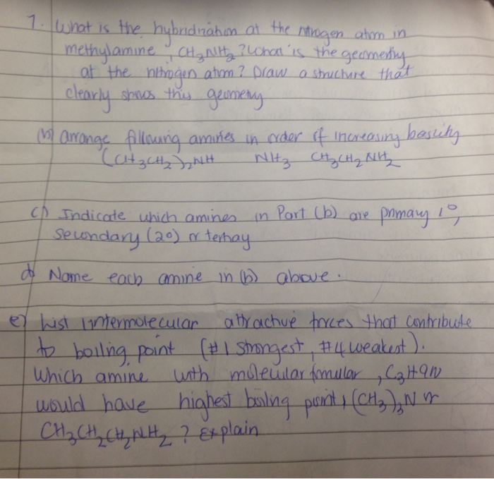 Solved 1. The hybridization of the nitrogen atom inthe
