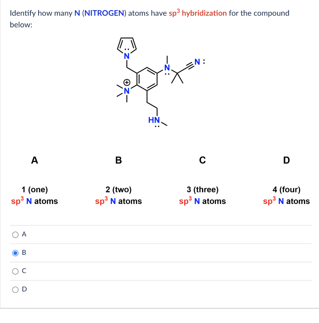 [Solved] Identify how many N ( NITROGEN ) atoms have sp 3 hybridization