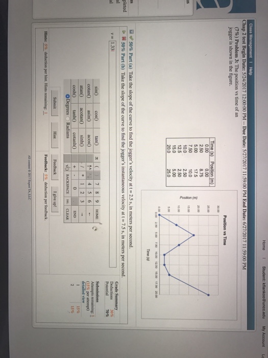 The figure below is the position vs. The slope of the position. What is the jogger’s velocity at a) t = 10s (lc) b) t = 25s (lc) c) t = 35 s (lc) 4 At t = 2.0 s, what are the particle’s (a) position, (b) velocity, and (c) acceleration? (a) what is the jogger’s velocity at t =.
