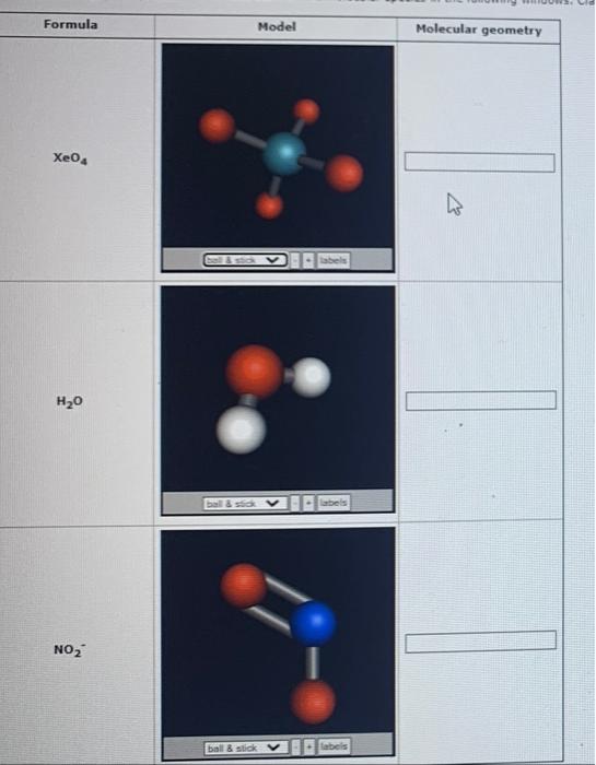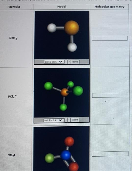 Solved Formula Model Molecular geometry SeH2 ball & stick