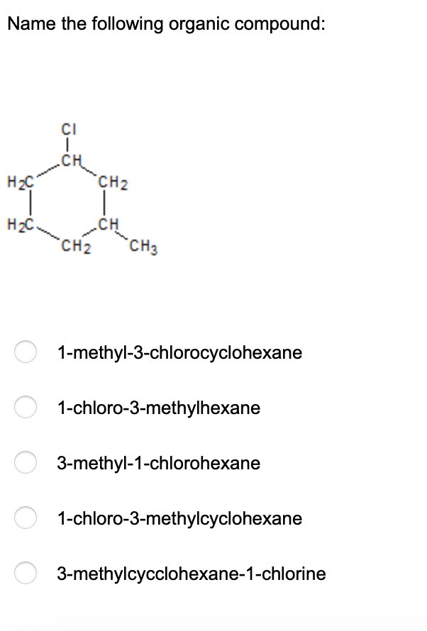 Solved Name the following organic compound CI CH H2C CH2