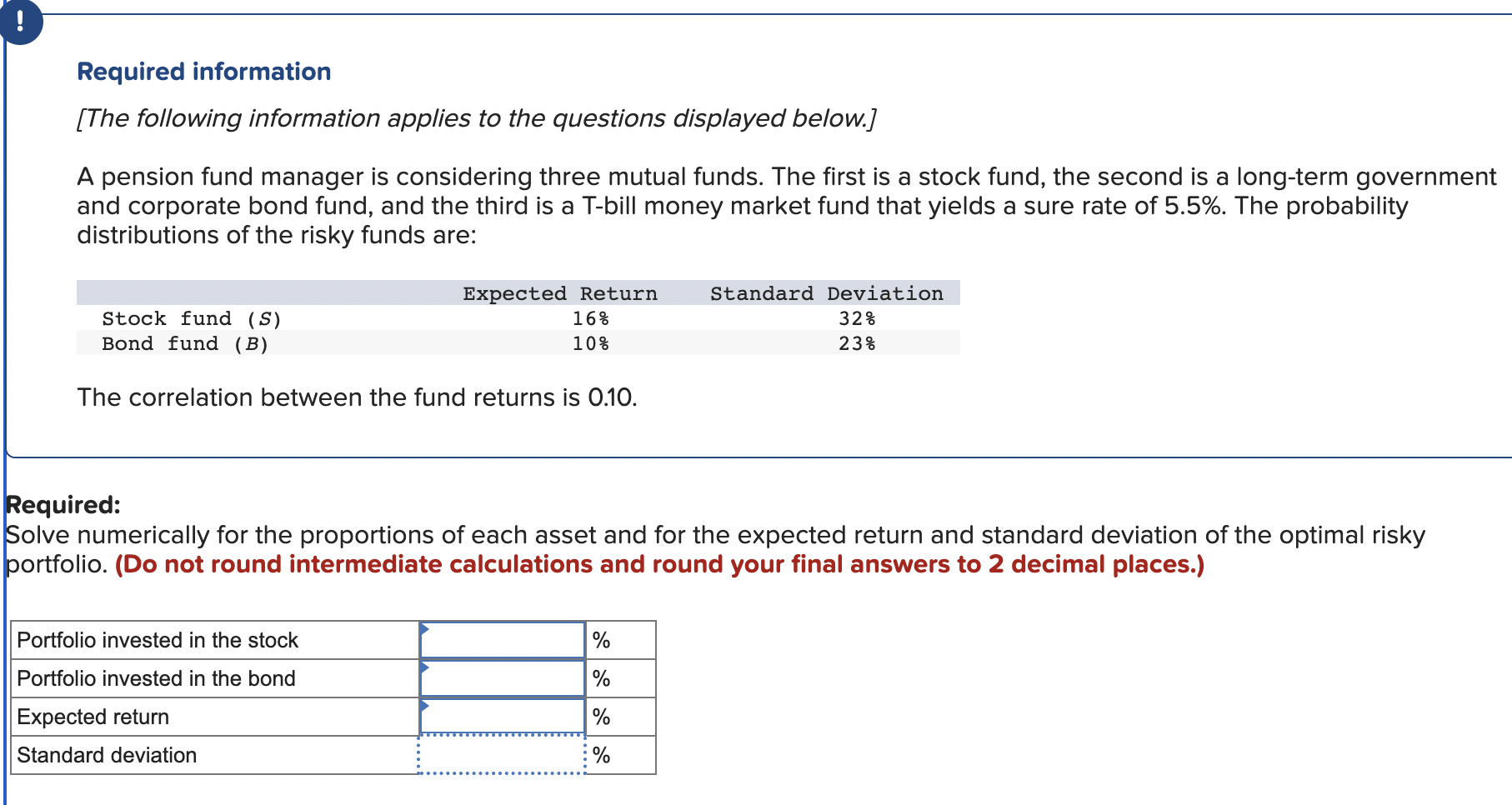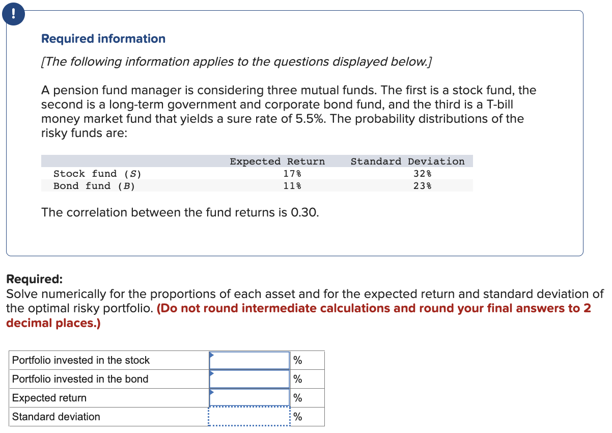 Solved Required What is the Sharpe ratio of the best