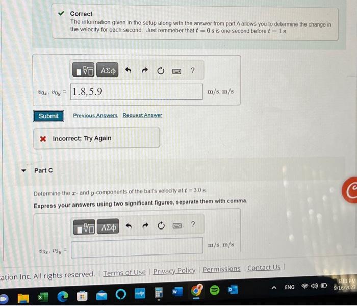 SOLVED Determine the X and Y components of the ball's velocity at t=0s