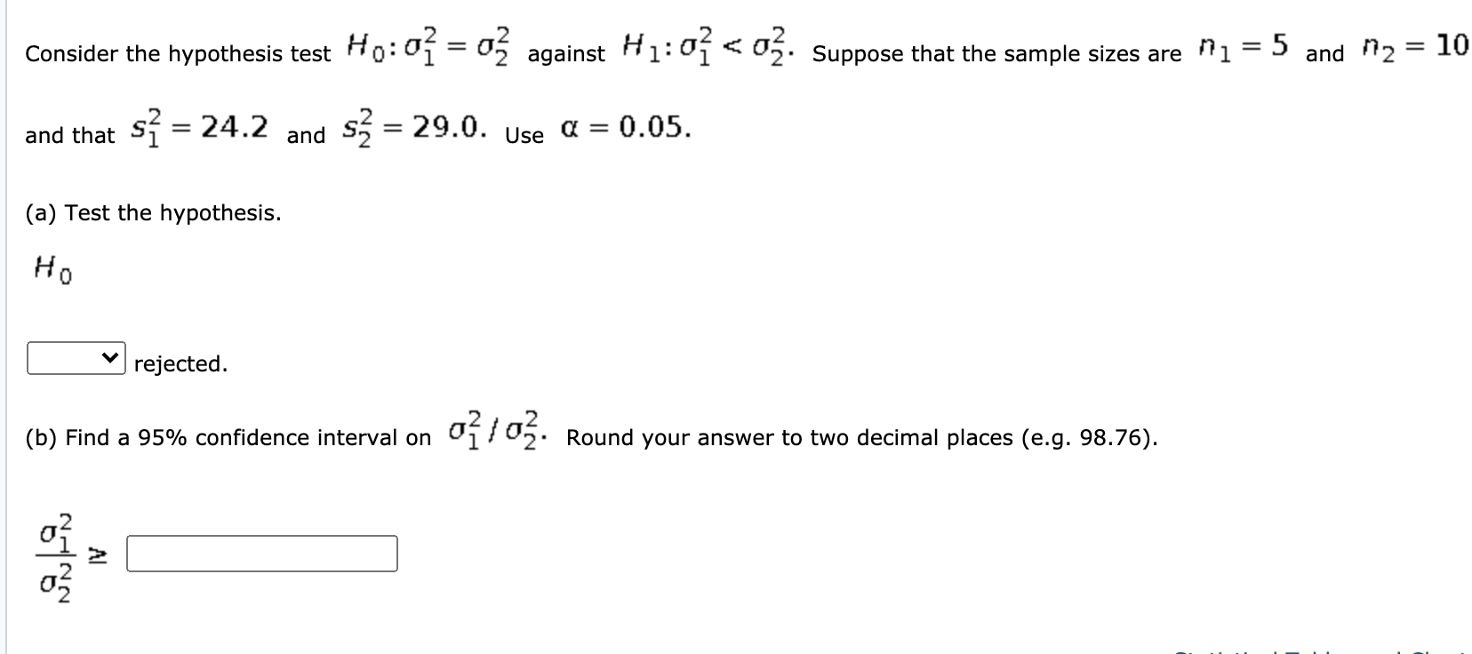 Solved Consider the hypothesis test Upper H 0 colon sigma