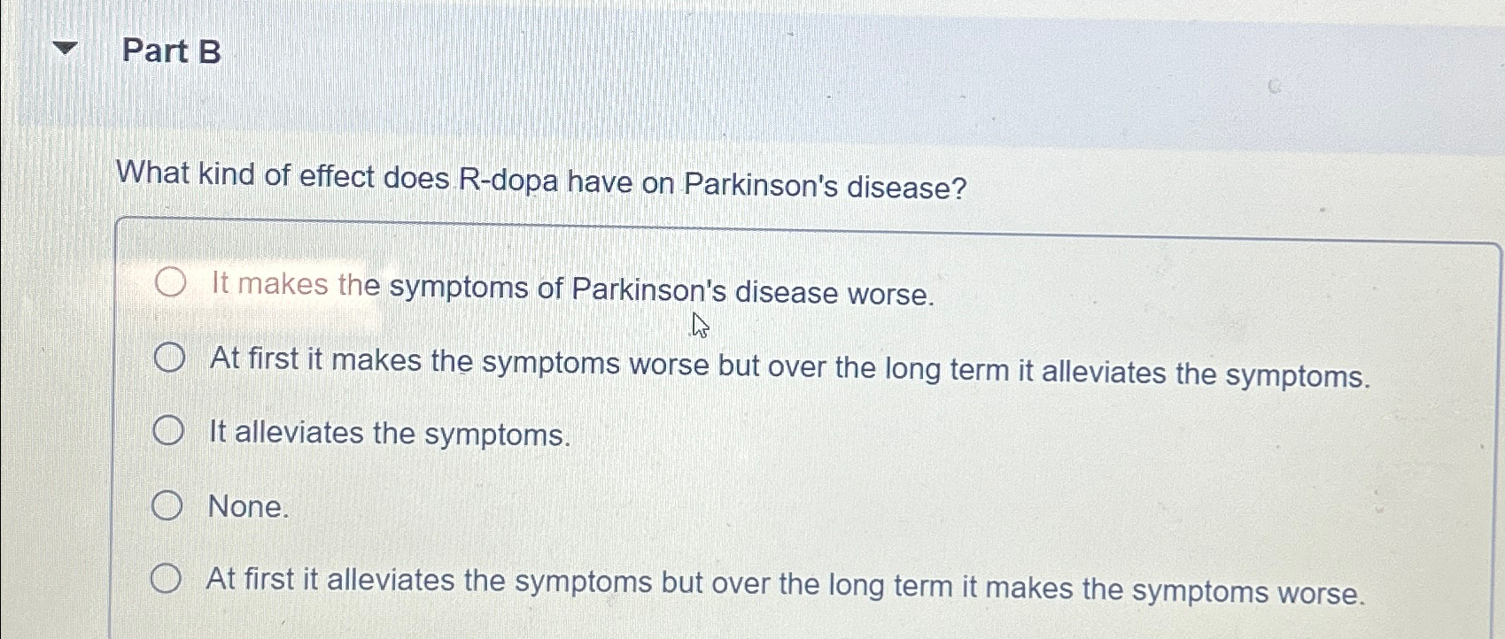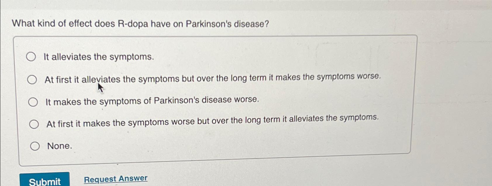 Solved What kind of effect does Rdopa have on Parkinson's