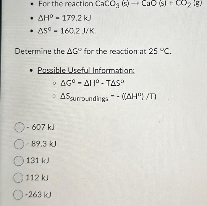 Solved For the reaction CaCO3( s)→CaO(s)+CO2( g)