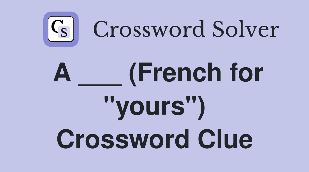 A ___ (French for "yours") Crossword Clue Answers Crossword Solver