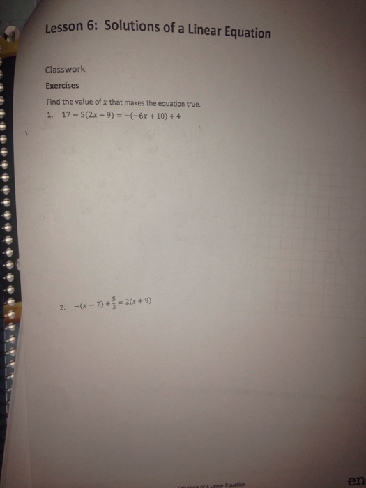 Solved Lesson 6 Solution Of A Linear Equation Classwork
