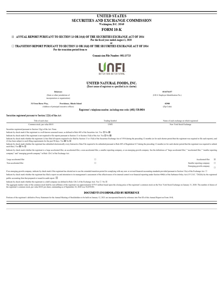Unfi United Natural Food Inc 2020 PDF Retail Supply Chain