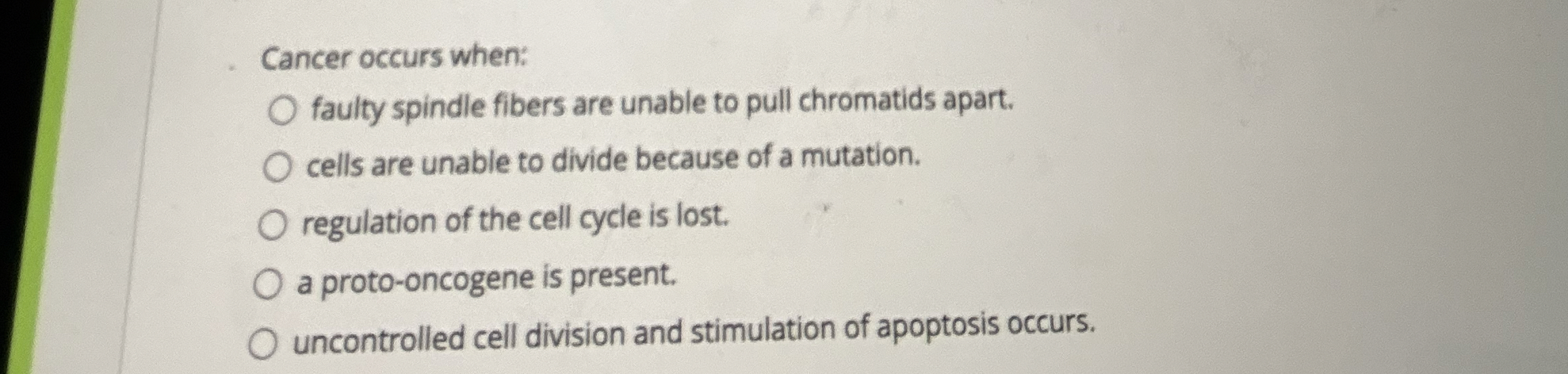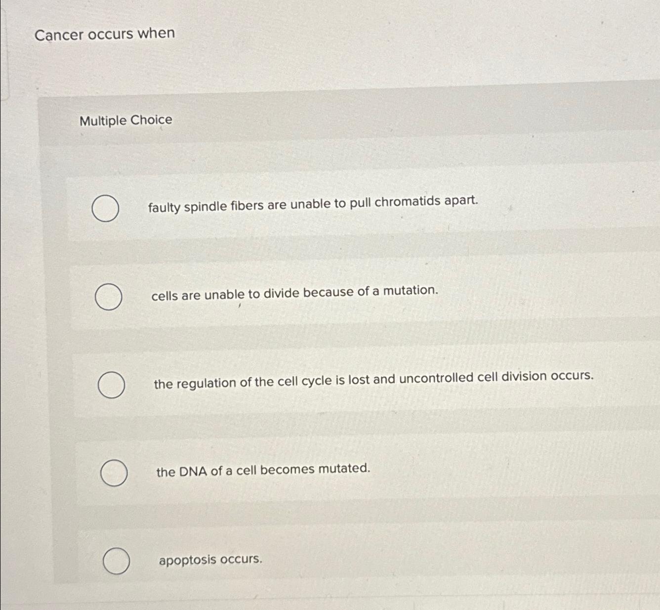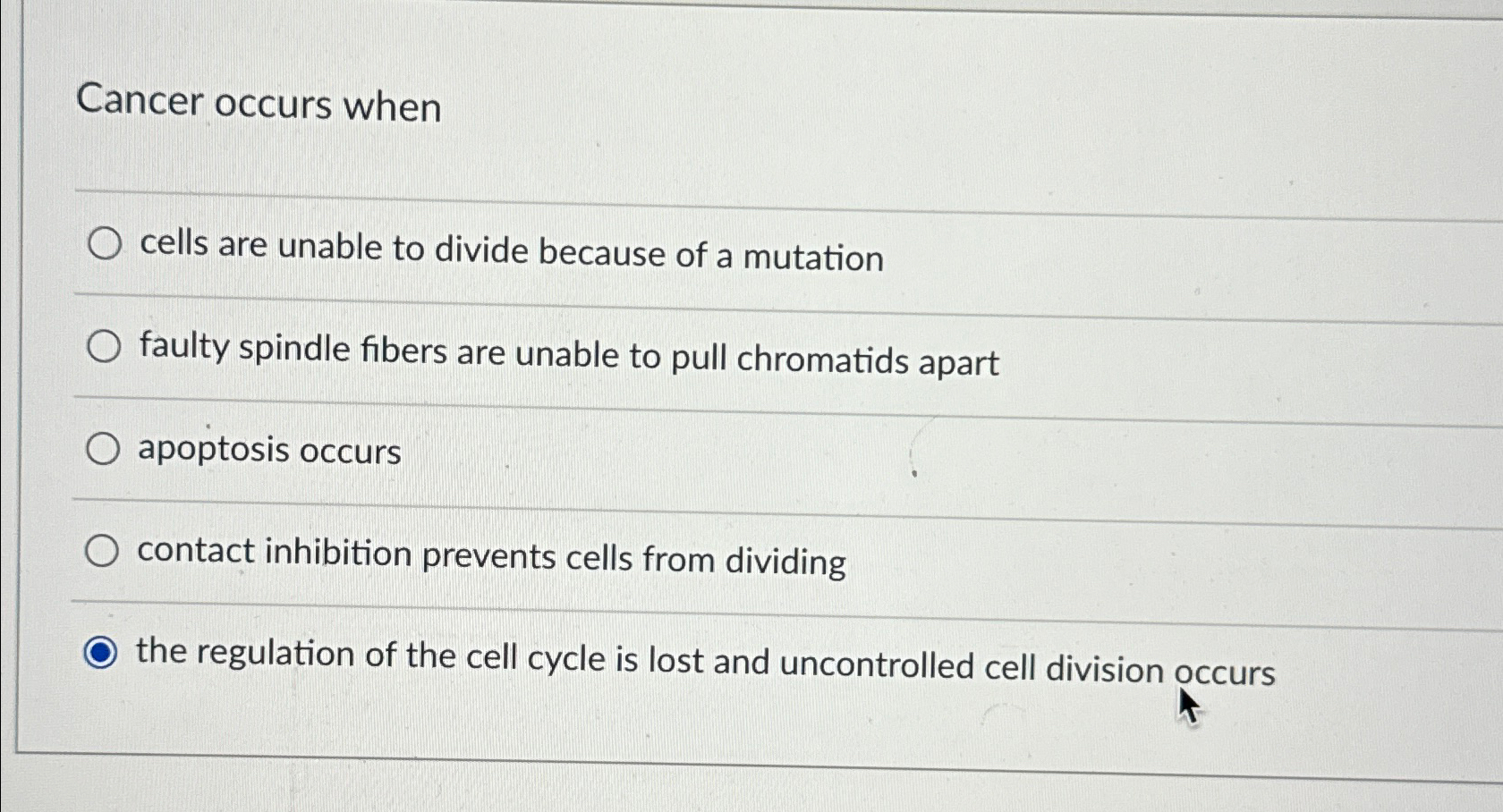 Solved Cancer occurs whenMultiple Choicefaulty spindle
