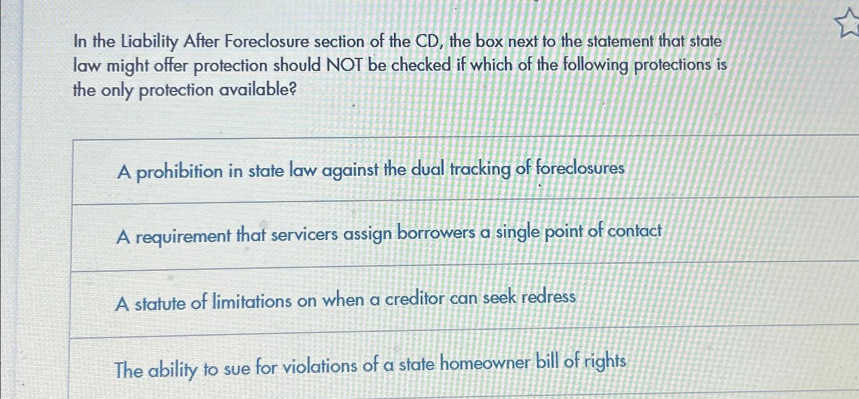 Completing this section of the closing disclosure depends on the legal interpretation of applicable state law, which we cannot do for the. A similar but more detailed “liability after foreclosure” disclosure is required on all closing disclosures. Under any other conditions, this statement is not permitted to appear in the loan estimate. In the context of a foreclosure, the liability.