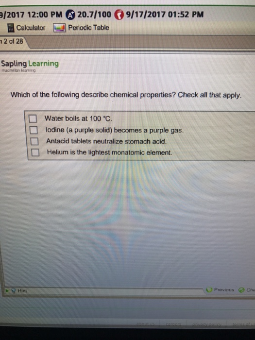 Solved which of the following are chemical properties?