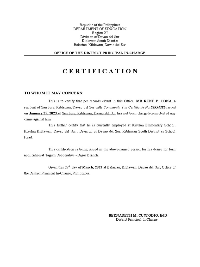 Cert of No Pending Case PDF Philippines