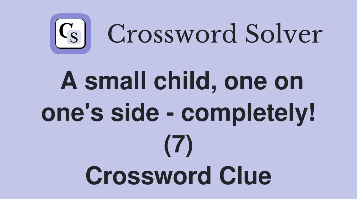 The crossword solver found 30 answers to with child (8), 8 letters crossword clue. We have found 40 possible answers for this clue in our database. Here is the answer for the crossword clue ___. This clue was last spotted on august. Today's crossword puzzle clue is a quick one: