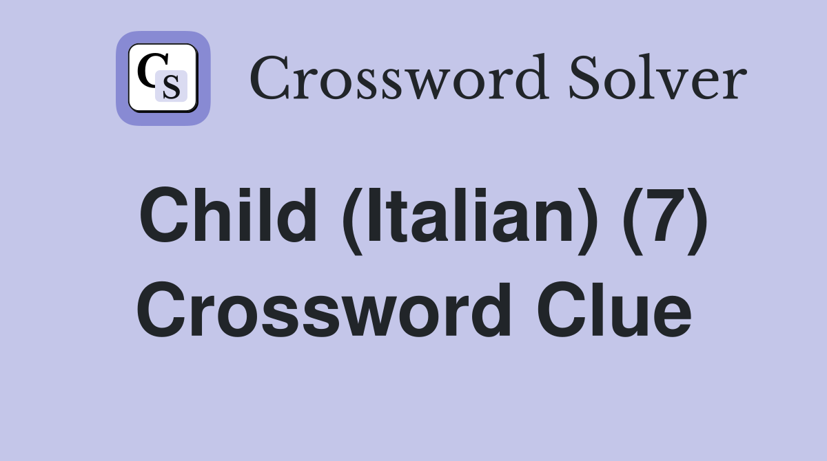 Child (Italian) (7) Crossword Clue Answers Crossword Solver
