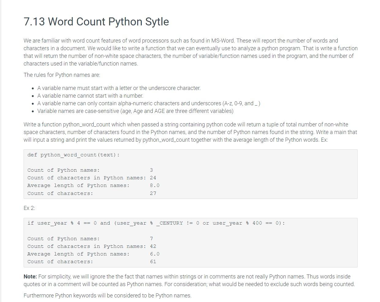 Solved 7.13 Word Count Python Sytle We are familiar with